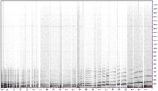 sobald nur noch der zweite und (in höheren Lagen) nur noch der Grundton den A-Formant-Bereich besetzen. Dieser Mustererkennungsprozeß wird durch einige weitere Faktoren unterstützt: Dies sind die Glissandi zwischen den einzelnen Tonhöhen, die ständigen Minimalschwankungen in der Frequenz und Amplitude, wie bei der Artikulation in der Länge stark schwankende Ein- und Ausschwingvorgänge (zwischen einigen und einigen 100 ms), und besonders auch das gesangstypische Vibrato mit einer Frequenz von ca. 6 Hz. (Nach den Untersuchungen von Jürgen Meyer14