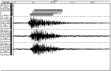 5.2. Editierte DateienUm noch systematischer an die Untersuchung der Performance-Qualität von hybriden Klavieren herangehen zu können, bietet es sich an, in einem MIDI-Programm Dateien zu editieren, durch welche ein bestimmter Parameter isoliert untersucht werden kann (wobei die Re-Recording Methode auch wiederum hervorragende Dienste leistet). Es darf dabei nur wirklich nie vergessen werden, daß die Ansteuerung des Instruments über extern verschickte GM-Signale immer systembedingten Grenzen hat, Grenzen, die vor allem im zeitlich meßbaren Bereich liegen. Editierte Dateien können übrigens zu vergleichenden Zwecken auch in die jeweilige CU importiert werden (vgl. Abschnitt 3.1). Zur Illustration ist ein Test mit Clustern in der Mittellage und ihrer Auslesung mit verschiedenen Mappings angefügt. Der in Portato gehaltenen Wiederholung dieses konstruierten und quantisiert kopierten Clusters wurde dabei die linear absteigende Reihe der Velocity-Werte 127, 107, 87, usw. zugeordnet. Man beachte die Unterschiede in der relativen Fortschreitung der ausgelesenen Amplitudenspitzen bei den vier Umsetzungen durch die beiden obigen Instrumente.