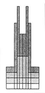 Letztere Schreibweise kommt der Hörerfahrung näher, aber macht gleichzeitig die Grenzen unserer Notation offensichtlich. Bei der Genese dieser Tempostruktur spielte das graphische Darstellungsverfahren (und zwar die Tempographik) zweierlei Rolle: Einerseits ist die Idee der vollständig bogenstrukturierten Tempogestalt erst durch die Interpretationsanalyse mittels graphischer Darstellung gewachsen (vgl. Graphik in Band 11 des Neuen Handbuchs der Musikwissenschaft, S. 319). Andererseits entbehrt auch die Tempographik dieser Struktur nicht des ästhetischen Reizes; sie kann daher als Bestandteil der Komposition (sozusagen anstatt eines Notentextes) bezeichnet werden. Die meisten mathematischen Eigenschaften der Struktur lassen sich an der Graphik zudem leicht nachvollziehen. Die Tempographiken sind für die Strukturen mit 1 bis 7 Ebenen gezeigt. Hier wurde von der Möglichkeit der Ausfüllung mit Grautönen Gebrauch gemacht. Wie auch auf der beim Vortrag vorgeführten Diskette ist hier die Gesamtzeit, die das Beispiel einnimmt, jeweils verdoppelt worden, wenn eine neue Ebene hinzukommt. (Der Darstellungsmaßstab auf der x- und y-Achse bleibt derselbe.) Dadurch bleibt - wegen der Verdopplung der Anzahl der Töne bei jeder hinzukommenden Ebene - die Häufigkeit der Töne, gemittelt über das ganze Beispiel, unabhängig von der Anzahl der Ebenen gleich, was sich in der Abbildung (wie sich leicht zeigen läßt) dadurch widerspiegelt, daß die durchschnittliche Höhe in allen gezeigten Abbildungen gleich ist.
