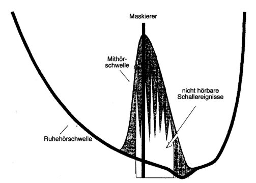 würden. Diese und andere Effekte nützt das Musicam-Verfahren, das bei der neuen digitalen Compact-Cassette DCC verwendet wird, aus. Auf der diesem Band beiliegenden CD sind Hörbeispiele enthalten. Auf Track 21 ist ein kurzer Höreindruck des ausgewählten Musikstückes im normalen CD-Code aufgezeichnet. Es handelt sich um die Symphonische Peripetie von Rafael Kubelik. Es spielt das Symphonieorchester des BayerischenRundfunks unter der Leitung von Sir Colin Davis mit Edgar Krapp an der Orgel. Track 22 enthält einen kurzen Ausschnitt, der viermal hintereinander wiederholt wird: normal - reduziert -normal - reduziert. Beim reduzierten Signal wurde die Übertragungsrate auf 128 kbit/Sekunde gesenkt. Zum Vergleich ist auf Track 23 das Differenzsignal zwischen der normalen Übertragung mit 1.411 kbit/Sekunde und der reduzierten mit 128 kbit/Sekunde zu hören. Klangbeispiele online: Track 21, Track 22, Track 23, Track 24, Track 25