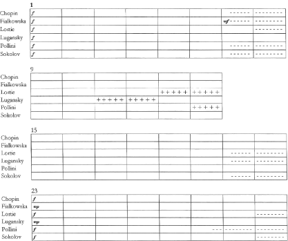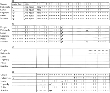 Etüde Nr. 12. Interpretierte Dynamik der Performances im Vergleich.
