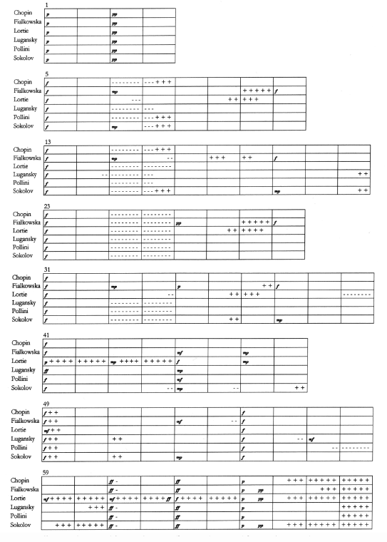 Etüde Nr. 11. Interpretierte Dynamik der Performances im Vergleich.