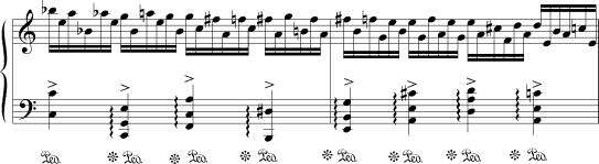 Pedal, um die acht arpeggierten Akkorde miteinander zu verbinden (Abbildung