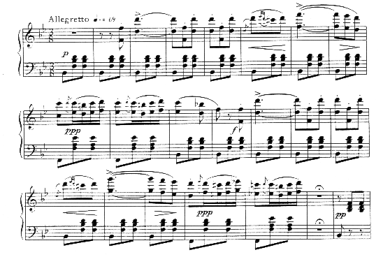 Die von Verdi geforderte Dynamik widerspricht wahrhaftig einem vorbereiteten Ständchen, sie betont das Außergewöhnliche, ja fast Geheimnisvolle, dieses Vorgangs. ![]() Ein festliches Trinklied, gekonnt vorgetragen, würde eine dem Anlass entsprechende gleichmäßige Lautstärke haben, nicht aber solche dynamischen Schwankungen. Hier liegt gewissermaßen ein verfremdetes Trinklied vor. Dafür, dass Alfred bewusst sein Trinklied verfremdet, gibt es keinen plausiblen Grund. Die Dynamik muss ihren Grund in dem verzauberten Gefühlszustand des Alfred haben, verzaubert von der magischen Ausstrahlung Violettas. Nur noch diese Ausstrahlung beseelt den verliebten Alfred, so dass er alles um sich herum vergisst und -sich ganz seiner Euphorie hingebend – ihre, Violettas, Ausstrahlung im Trinklied zum Ausdruck bringt. Das meint Felsenstein mit Hypnose. Die erfolgreiche Erprobung ihrer Macht über diesen Mann verändert jedoch Violetta. Deswegen ist entscheidend, dass der Sänger des Alfred seine Strophe des Trinklieds in der Weise singt, dass ihm gerade die Präsenz Violettas dieses Trinklied eingibt. Er kann das Lied in dem Augenblick erfinden, weil er verzaubert ist. Weil ihr Erfolg bei der Verführung sich im Trinklied Alfreds darstellt, spiegelt es auch ihre Erregung.222
