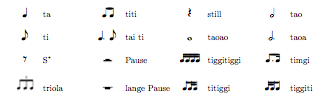 ›ta‹ benannt, das Achtel-Paar als ›titi‹, die Halbe als ›ta-o‹ (oder ta-a) usw. Ein an