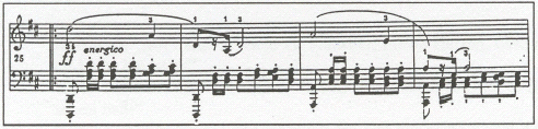 durch den vollen akkordischen Satz und die Staccatobewegungen verursacht. In einer