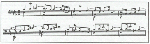 Bei Bach treten Präludium und Fuge einander selbständig und ebenbürtig gegenüber. Sie sind erstmals zu einem festen Paar verbunden. Dieses Prinzip setzt Bergman filmisch um, indem er dem Chopinschen Prélude die nächtliche »Konfliktfuge« folgen läßt, die jedoch in diesem Fall eine Suite ist. Dennoch ist die filmisch-musikalische Konstellation unverkennbar, denn auch Bachs Cellosuiten werden alle durch ein Prélude eingeleitet. Das subtile Werk von Chopin diente gleich einer Exposition der Vorstellung der beiden unterschiedlichen Charaktere. Nun folgt die nächtliche Abrechnung – die Durchführung – bei der Evas Haß offenbar wird. Sie gibt ihrer Mutter die Schuld an Helenas Krankheit und ihrer eigenen seelischen Verkrüppelung. Sie erinnert sich an ein Osterfest, an dem Lena noch nicht so krank war und sich in Leonardo verliebte. An dieser Stelle erfolgt eine Rückblende, in der wir Charlotte, Helena und Eva aus der Distanz in einem kleinen dunklen Raum sehen. Leonardo sitzt mit dem Rücken zur Kamera und spielt die graziös getragene Sarabande aus Bachs Suite Nr. 4 Es-Dur für Violoncello solo (vgl. Abbildung 10.2).14