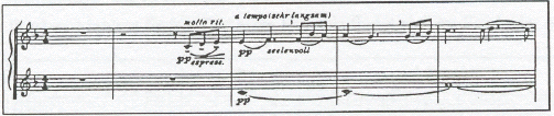 Die Tongebung bildet eine Symbiose von kammermusikalischer Zurückgezogenheit und symphonischem Espressivo und läßt so die Ambivalenzstruktur selbst innerhalb des Adagiettos entstehen.156 Wenn Cardus157 argumentiert, der Satz sei |