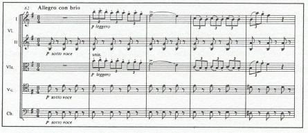 61). In Takt 62 beginnt die Exposition mit dem ersten Thema (e-Moll) (vgl. Abbildung