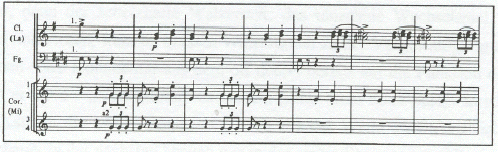 symmetrische Wiederholung (Takt 376), wobei zunächst nur Horn und Klarinette das