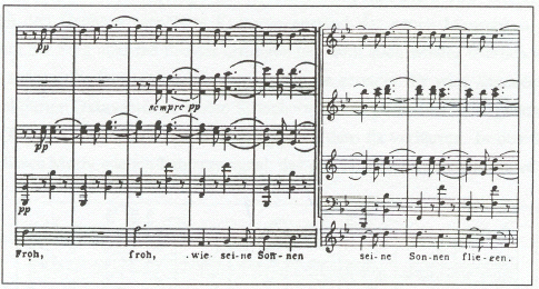 nach b-Moll moduliert wird. Der Hymnus ist der von den Gegnern verhöhnte