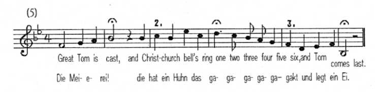 Diese Kanonmelodie sang mir einmal Kitty Trevelyan mit englischem Text vor. Ich achtete nicht der englischen Worte und unterlegte meine Zeilen. Erste und dritte Zeile tragen Rufcharakter, während die zweite einem Trommelspruch ähnelt. Das bewirkte die rhythmisierte Folge: "Amsel und Fink und Drossel und Star." Natürlich gibt es immer die Klügeren, die Wortumstellungen bei eingewöhnten Folgen nicht dulden und damit freilich dem Ursprungcharakter der zweiten Zeile nicht gerecht werden. Gottfried Wolters wiederum gefiel die holzschnittartige Formulierung der Melodie nicht, er glaubte, sie mit Floskeln anreichern zu müssen. 5 - Fritz Jöde veröffentlichte seinerseits diese Version mit anderen Worten, Jedoch seine Fassung setzte sich nicht durch. 6 Der langjährige Vorsitzende des Deutschen Sängerbundes, Dr. Willi Engels, schrieb mir einstmals, daß man auf seine Anfrage in England antwortete, der Kanon sei dort nicht bekannt. Er meinte dazu, seine Worte seien der Melodie so adäquat, daß es sich kaum um eine Unterlegung handeln könne. Dem ist nicht so. 7 Mit "Sonne im Mai" gelang mir erstmalig eine übertragbare Grundform, um Kanons zu tanzen. 8 Kein Zweifel, die "Rhythmisch-Musikalische Erziehung" (Richtung Elfriede Feudel) suchte immer wieder kanonische Formen in Raumbewegung umzusetzen. Götsch baute mit kanonischen Einsätzen bewegungsmäßige Szenen auf, z.B. mit Haydn's Kanon "Sag, was schwellt des Liedes Töne". Mir lag daran, griffige Grundformen zu finden, die volkstanzmäßig schnell übertragbar sind. So entstand die erste Prägung dieser Art unter dem Titel "Kanon getanzt". - Meine Fantasie für dergleichen wäre nie in Gang gekommen, hätte ich nicht über Jahre zum Englischen Kontratanz, zu Schwert-, Stock- und Morristänzen mit der Geige aufgespielt und auch gelegentlich mitgetanzt. ![]()  |