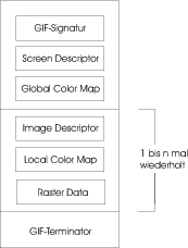 In Abbildung 10.6 ist der schematische Aufbau einer GIF-Datei dargestellt. Er gliedert