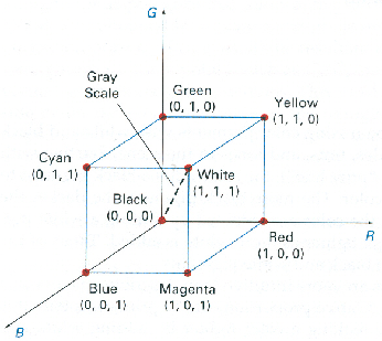 vom Ursprung zum Punkt (1,1,1) (Weiß) verläuft, lassen sich die verschiedenen