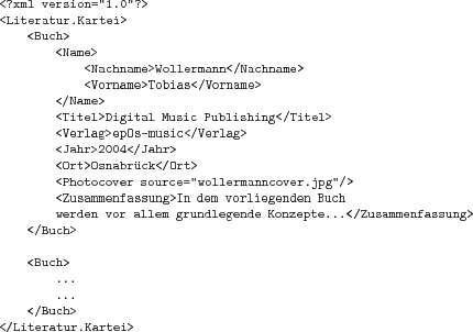 Literaturkartei dargestellt. Zunächst steht in einer XML-Datei immer die so genannte