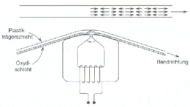 extrem schmalen Luftspalt des Aufnahmekopfes ein Magnetfeld induziert. Dieses